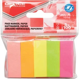 OFFICE products index, 15 x 50 mm, sachet suspendu de 5 x 100 pièces, couleurs assorties